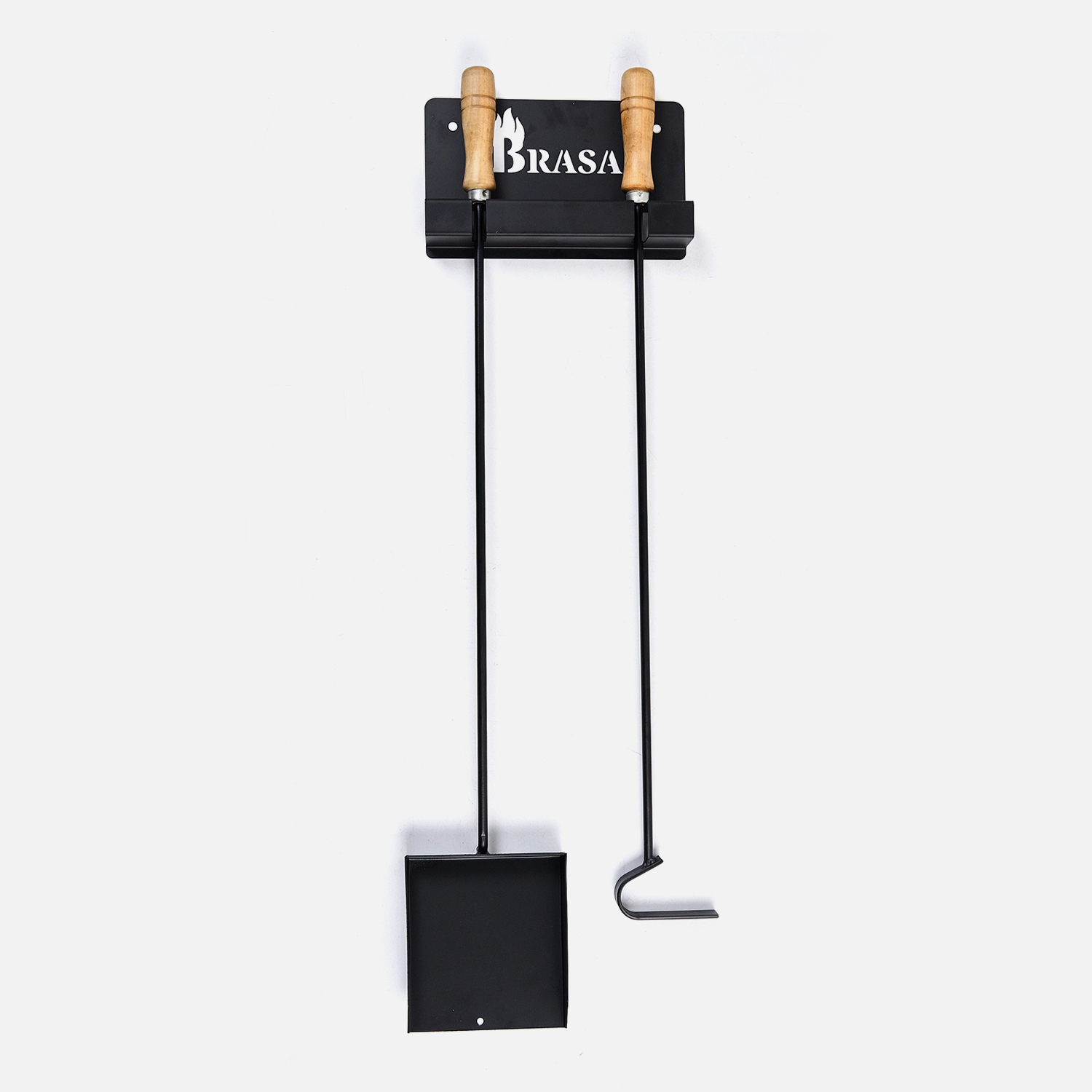Kit de palita y atizador con soporte, ideal para manejar el fuego y las brasas de manera cómoda y segura. Fabricado en acero resistente, incluye un práctico soporte para mantener todo organizado. ¡Perfecto para tus asados y parrilladas!